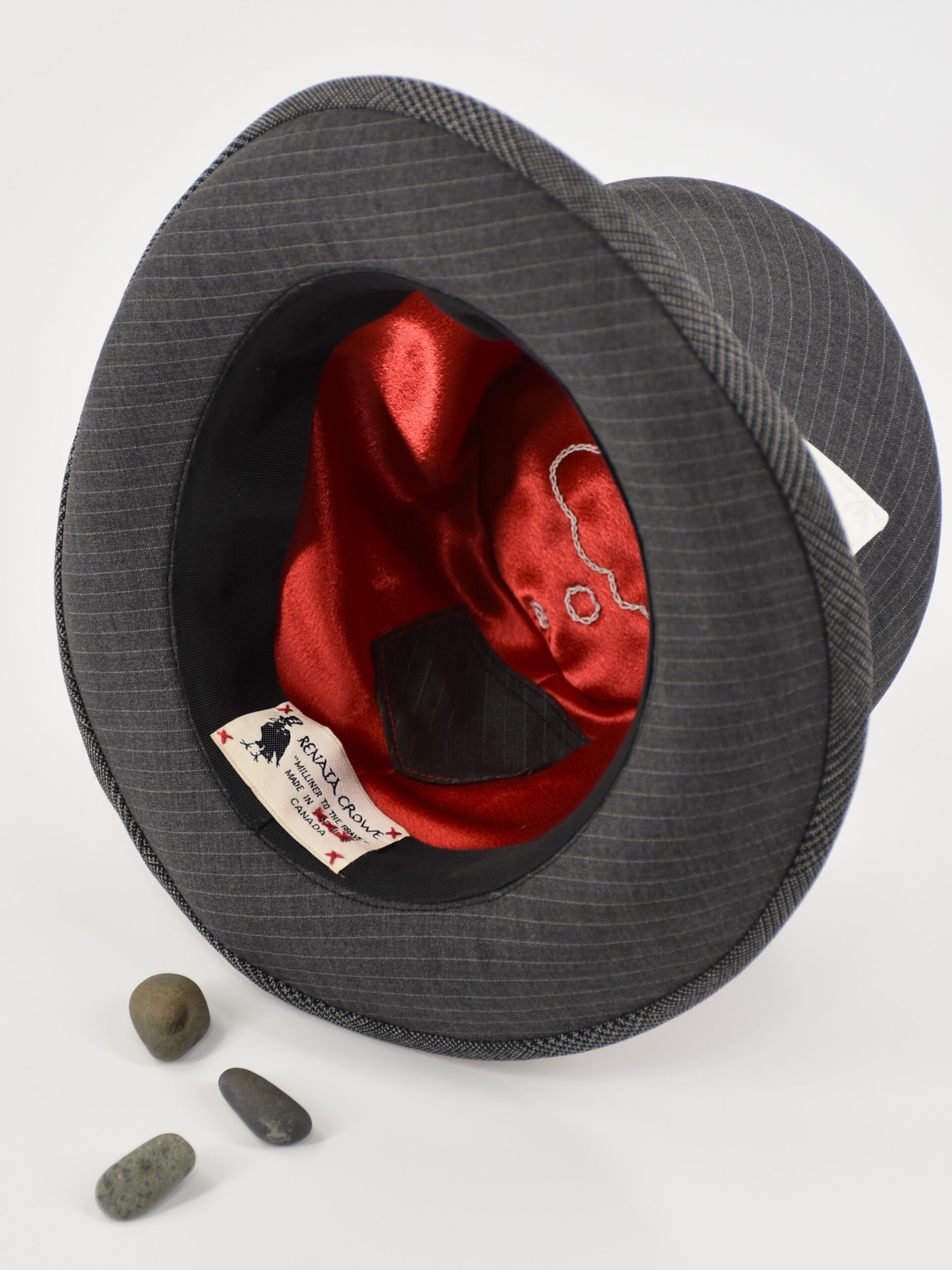 Impeccable in fit and finish – this covered Top Hat is tailored millinery at its finest. Couture craftsmanship with an irreverent eye for design is the hallmark of Renata’s Top Hats. Wired, boned, blocked and lovingly cajoled into existence this offering is as wearable as it is a collectible classic.